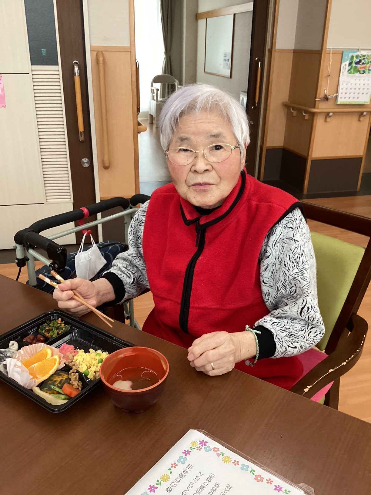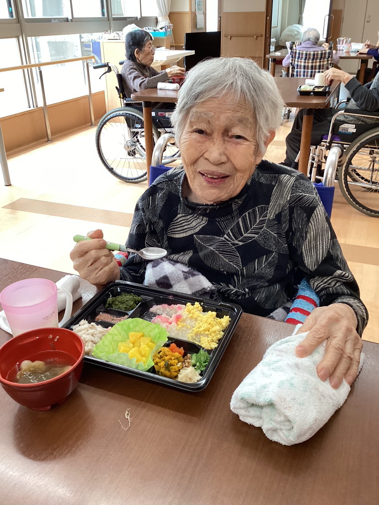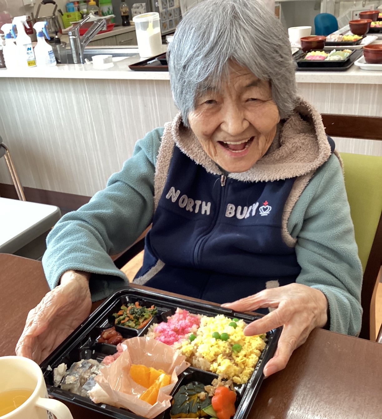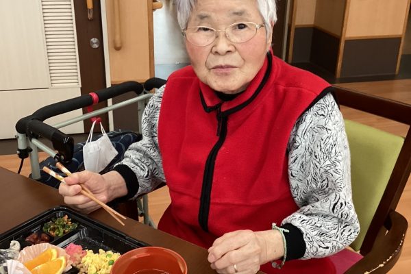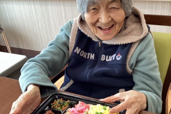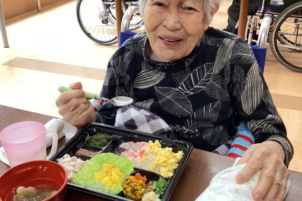お弁当を前に笑顔で召し上がる姿を拝見することができました。