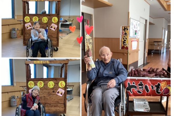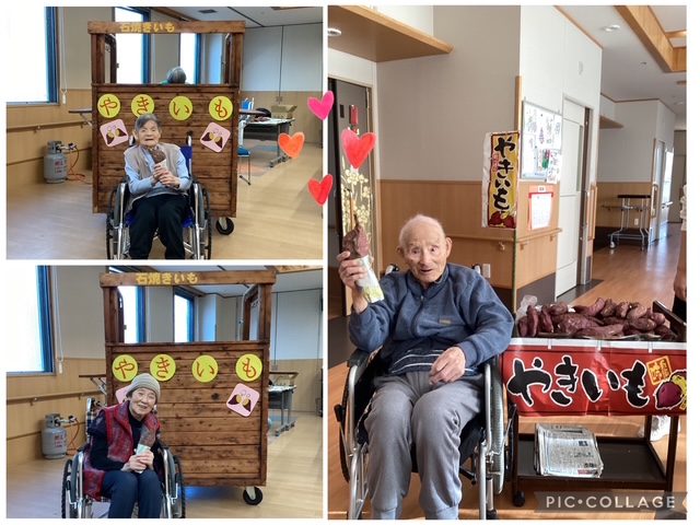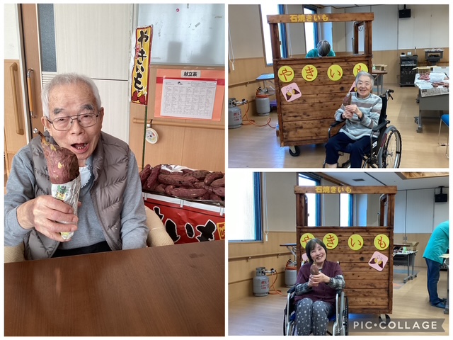 11月19日に施設の畑で採れたさつまいもで焼き芋を…。